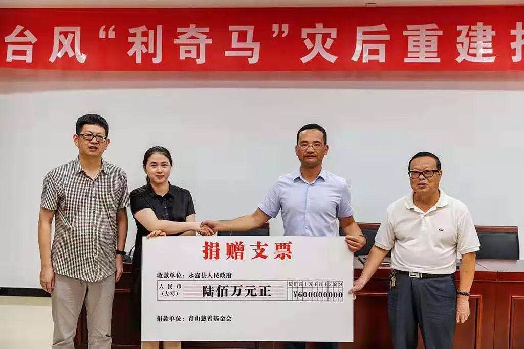青山實業(yè)向永嘉災區(qū)捐款600萬