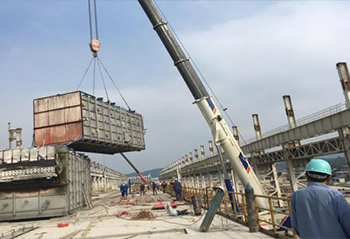 福建青拓上克不銹鋼有限公司冷酸爐殼吊裝就位,標志著冷酸線安裝施工開始。